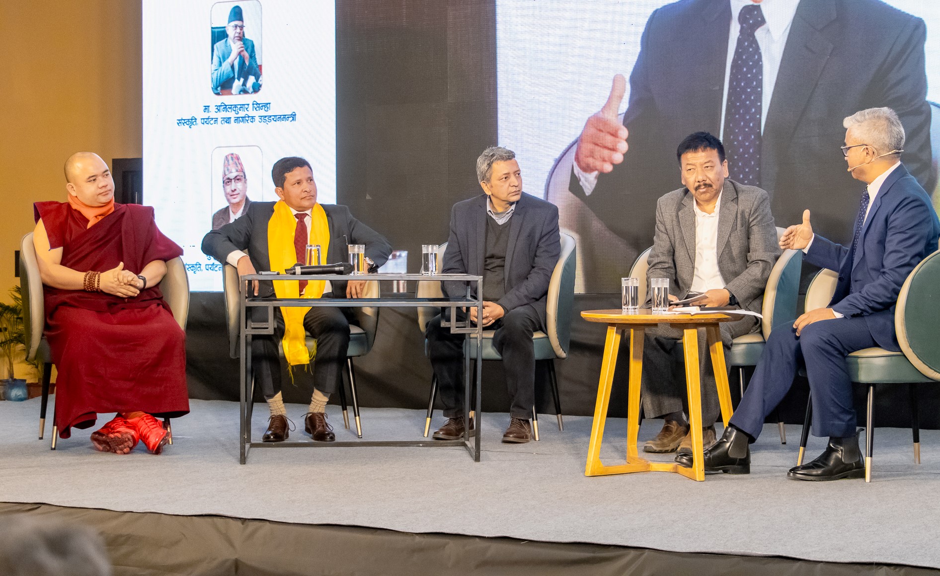 दुई चरणमा सम्पन्न कार्यक्रमको दोस्रो सत्रमा प्यानल छलफल आयोजना गरिएको थियो । बौद्ध धर्म, संस्कृति, पर्यटन प्रवद्र्धन तथा नीति निर्माणसम्बन्धी भएको प्यानल छलफलमा राष्ट्रिय सभा सदस्य माननीय सोनाम ग्याल्जेन शेर्पा, नेपाल पर्यटन बोर्ड जनसम्पर्क तथा प्रचार विभागका कार्यवाहक निर्देशक सुनिल शर्मा, नेपाल एसोसिएसन अफ टुर्र एण्ड ट्राभल्स एजेन्ट्स (नाट्टा) का अध्यक्ष कुमार मणी थपलिया, होटल एसोसिएसन नेपाल (हान)का अध्यक्ष विनायक शाह, ट्रेकिङ एजेन्सिज एसोसिएसन अफ नेपाल (टान)का अध्यक्ष सागर पाण्डे प्यानलिस्टका रूपमा सहभागी रहनुभएको थियो ।